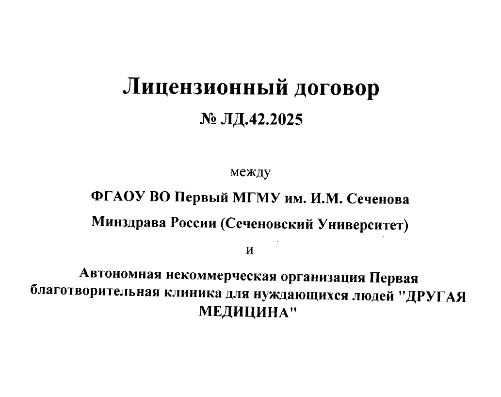 Заключённое соглашение с Первым медицинским университетом имени И.М. Сеченова на совместную и продуктивную работу.